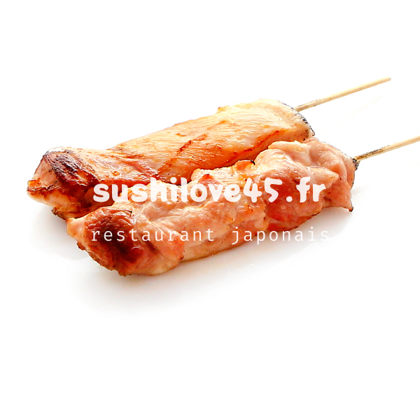 9 brochettes (3 poulet, 3 boulettes de poulet et 3 boeuf au fromage) et 6 raviolis au poulet.